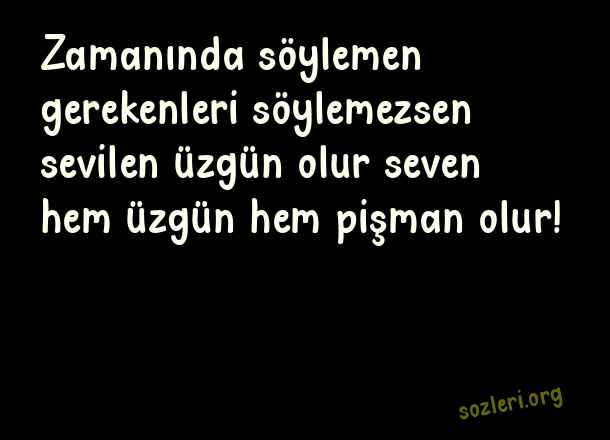 Zamanında söylemen gerekenleri söylemezsen sevilen üzgün olur seven hem üzgün hem pişman olur! ( Pişmanlık )