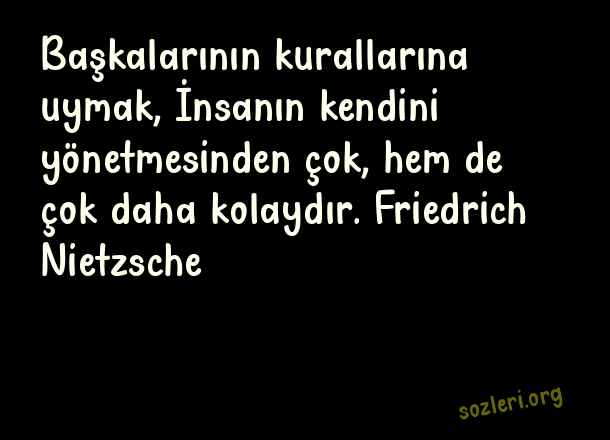 Başkalarının kurallarına uymak, İnsanın kendini yönetmesinden çok, hem de çok daha kolaydır. Friedrich Nietzsche ( Prensip )