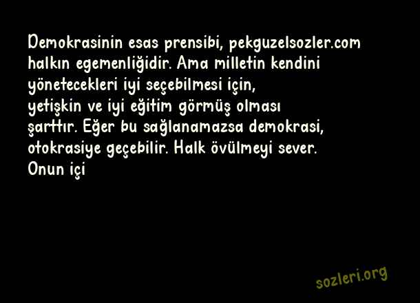 Demokrasinin esas prensibi, halkın egemenliğidir. Ama milletin kendini yönetecekleri iyi seçebilmesi için, yetişkin ve iyi eğitim görmüş olması şarttır. Eğer bu sağlanamazsa demokrasi, otokrasiye geçebilir. Halk övülmeyi sever. Onun içi ( Prensip )