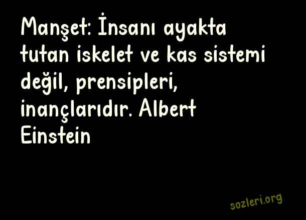 Manşet: İnsanı ayakta tutan iskelet ve kas sistemi değil, prensipleri, inançlarıdır. Albert Einstein ( Prensip )