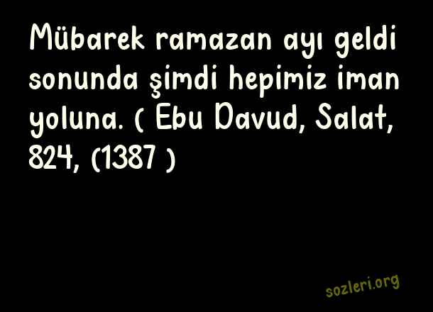 Mübarek ramazan ayı geldi sonunda şimdi hepimiz iman yoluna. ( Ebu Davud, Salat, 824, (1387 ) ( Ramazan İle İlgili Güzel Sözler )
