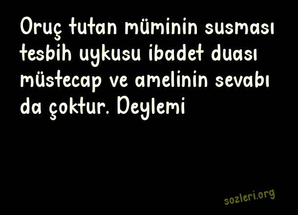 Oruç tutan müminin susması tesbih uykusu ibadet duası müstecap ve amelinin sevabı da çoktur. Deylemi ( Ramazan İle İlgili Güzel Sözler )