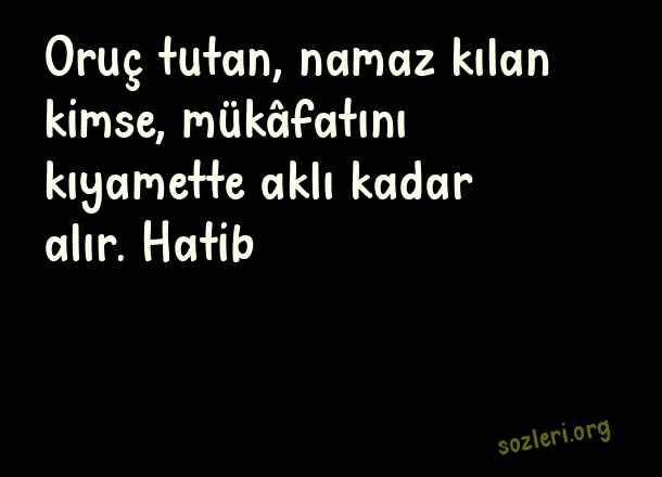 Oruç tutan, namaz kılan kimse, mükâfatını kıyamette aklı kadar alır. Hatib ( Ramazan İle İlgili Güzel Sözler )