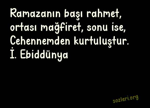 Ramazanın başı rahmet, ortası mağfiret, sonu ise, Cehennemden kurtuluştur. İ. Ebiddünya ( Ramazan İle İlgili Güzel Sözler )