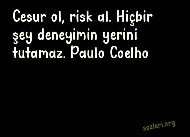 Cesur ol, risk al. Hiçbir şey deneyimin yerini tutamaz. Paulo Coelho ( Risk )