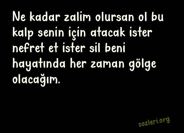 Ne kadar zalim olursan ol bu kalp senin için atacak ister nefret et ister sil beni hayatında her zaman gölge olacağım. ( Romantik Aşk )