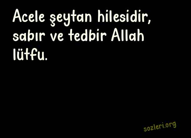 İşe acele ile girme, sabır ve teenni ile hareket et. Acele yapılmış olan işler yarın pişmanlık getirir.