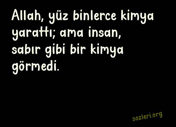 Allah, yüz binlerce kimya yarattı; ama insan, sabır gibi bir kimya görmedi. ( Sabır )