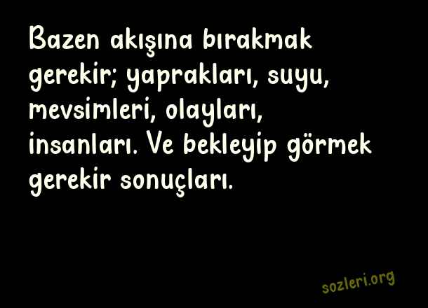 Bazen akışına bırakmak gerekir; yaprakları, suyu, mevsimleri, olayları, insanları. Ve bekleyip görmek gerekir sonuçları. ( Sabır İle İlgili Güzel Sözler )