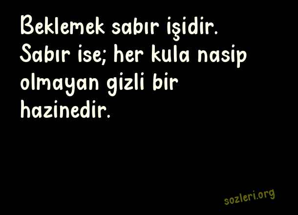 Beklemek sabır işidir. Sabır ise; her kula nasip olmayan gizli bir hazinedir. ( Sabır )