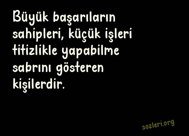 Büyük başarıların sahipleri, küçük işleri titizlikle yapabilme sabrını gösteren kişilerdir. ( Sabır İle İlgili Güzel Sözler )