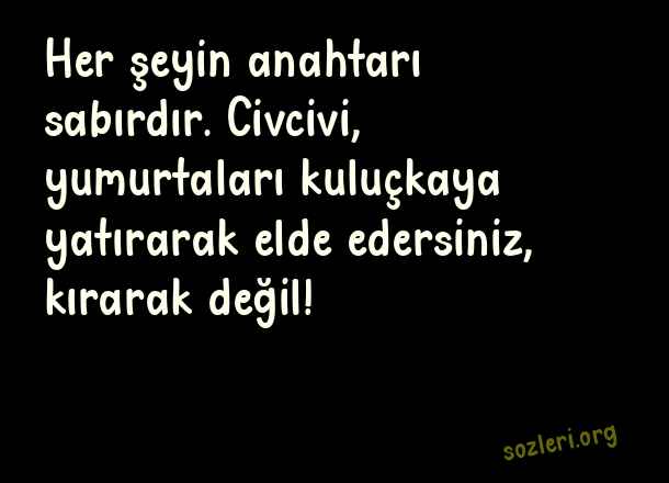 Her şeyin anahtarı sabırdır. Civcivi, yumurtaları kuluçkaya yatırarak elde edersiniz, kırarak değil! ( Mevlana’nın Sabıri )