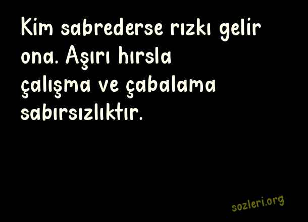 Kim sabrederse rızkı gelir ona. Aşırı hırsla çalışma ve çabalama sabırsızlıktır. ( Mevlana’nın Sabıri )