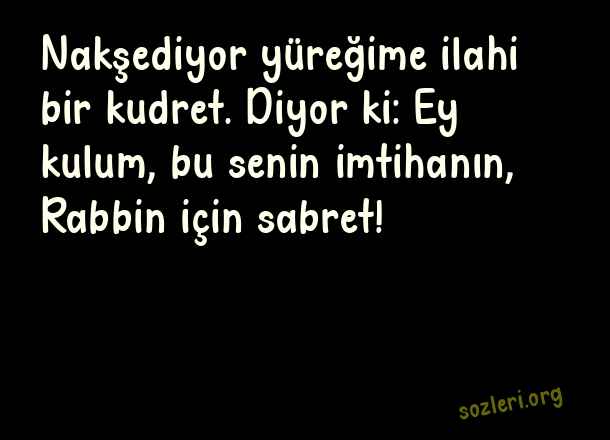 Nakşediyor yüreğime ilahi bir kudret. Diyor ki: Ey kulum, bu senin imtihanın, Rabbin için sabret! ( Sabır )