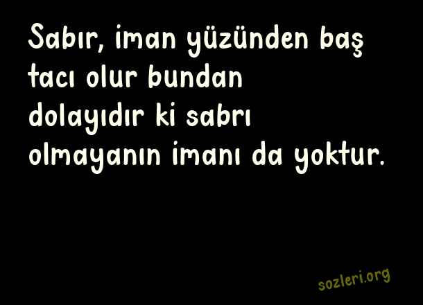 Sabır, iman yüzünden baş tacı olur bundan dolayıdır ki sabrı olmayanın imanı da yoktur. ( Sabır )