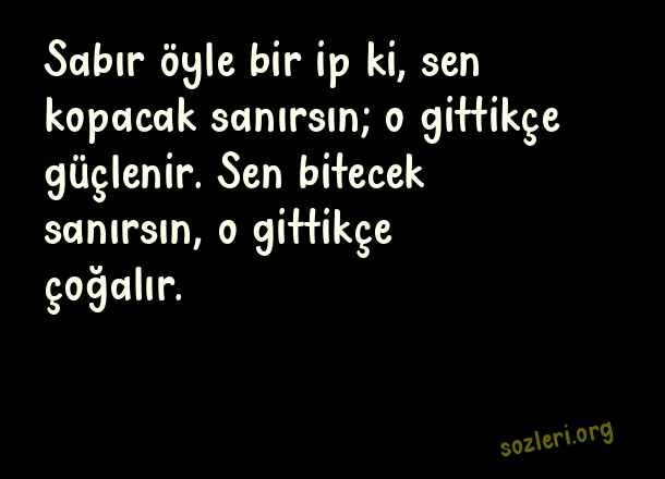 Sabır öyle bir ip ki, sen kopacak sanırsın; o gittikçe güçlenir. Sen bitecek sanırsın, o gittikçe çoğalır. ( Sabır )