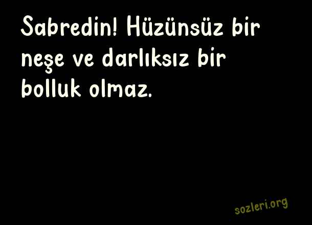 Sabredin! Hüzünsüz bir neşe ve darlıksız bir bolluk olmaz. ( Sabır İle İlgili Güzel Sözler )