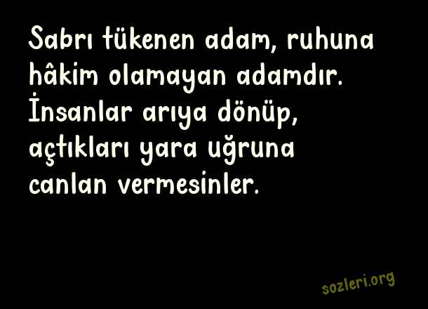 Sabrı tükenen adam, ruhuna hâkim olamayan adamdır. İnsanlar arıya dönüp, açtıkları yara uğruna canlan vermesinler. ( Sabır İle İlgili Güzel Sözler )