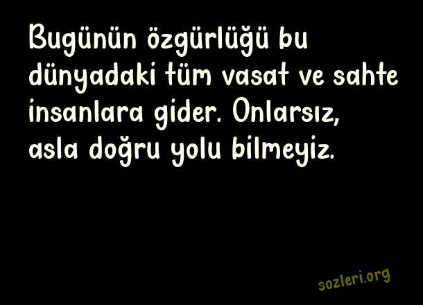Bugünün özgürlüğü bu dünyadaki tüm vasat ve sahte insanlara gider. Onlarsız, asla doğru yolu bilmeyiz. ( Sahtekar İnsanlara Sözler )