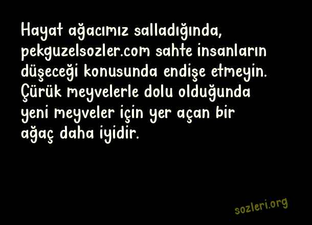 Hayat ağacımız salladığında, sahte insanların düşeceği konusunda endişe etmeyin. Çürük meyvelerle dolu olduğunda yeni meyveler için yer açan bir ağaç daha iyidir. ( Sahtekar İnsanlara Sözler )