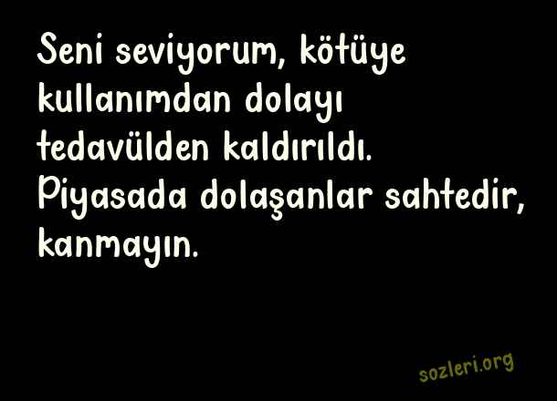 Seni seviyorum, kötüye kullanımdan dolayı tedavülden kaldırıldı. Piyasada dolaşanlar sahtedir, kanmayın. ( Sahtekar İnsanlara Sözler )