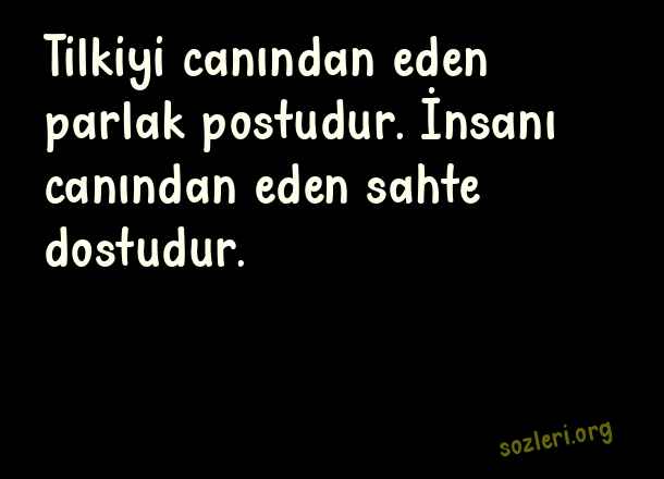 Tilkiyi canından eden parlak postudur. İnsanı canından eden sahte dostudur. ( Sahtekar İnsanlara Sözler )