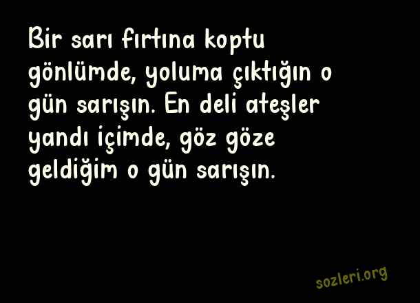 Bir sarı fırtına koptu gönlümde, yoluma çıktığın o gün sarışın. En deli ateşler yandı içimde, göz göze geldiğim o gün sarışın. ( Sarışınlara Sözler )