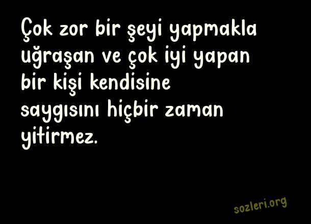 Çok zor bir şeyi yapmakla uğraşan ve çok iyi yapan bir kişi kendisine saygısını hiçbir zaman yitirmez. ( Saygı )