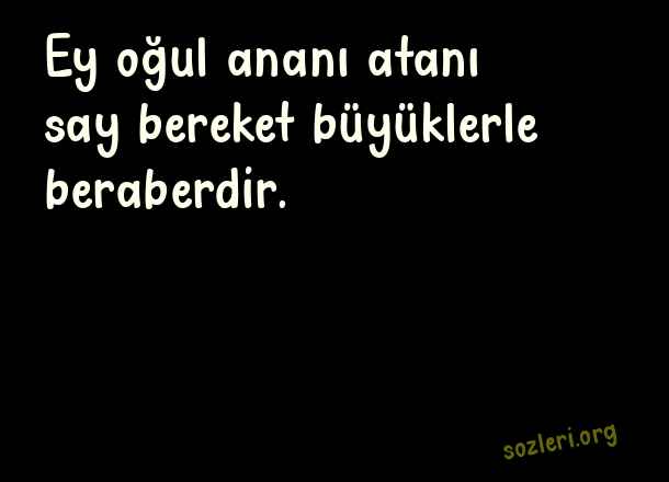 Ey oğul ananı atanı say bereket büyüklerle beraberdir. ( Saygı )