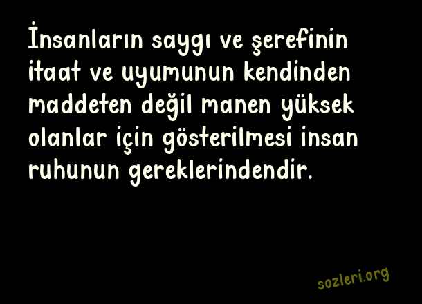 İnsanların saygı ve şerefinin itaat ve uyumunun kendinden maddeten değil manen yüksek olanlar için gösterilmesi insan ruhunun gereklerindendir. ( Saygı )