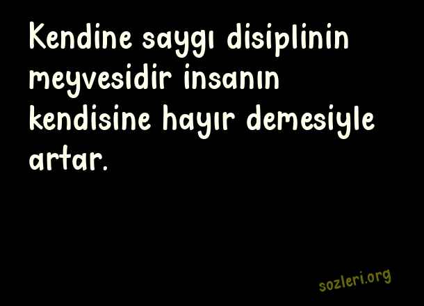 Kendine saygı disiplinin meyvesidir insanın kendisine hayır demesiyle artar. ( Saygı )