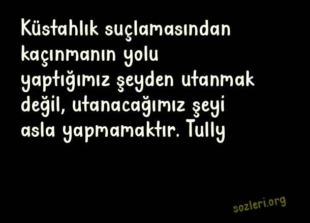 Küstahlık suçlamasından kaçınmanın yolu yaptığımız şeyden utanmak değil, utanacağımız şeyi asla yapmamaktır. Tully ( Saygısızlık )