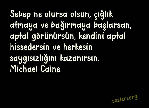 Sebep ne olursa olsun, çığlık atmaya ve bağırmaya başlarsan, aptal görünürsün, kendini aptal hissedersin ve herkesin saygısızlığını kazanırsın. Michael Caine ( Saygısızlık )