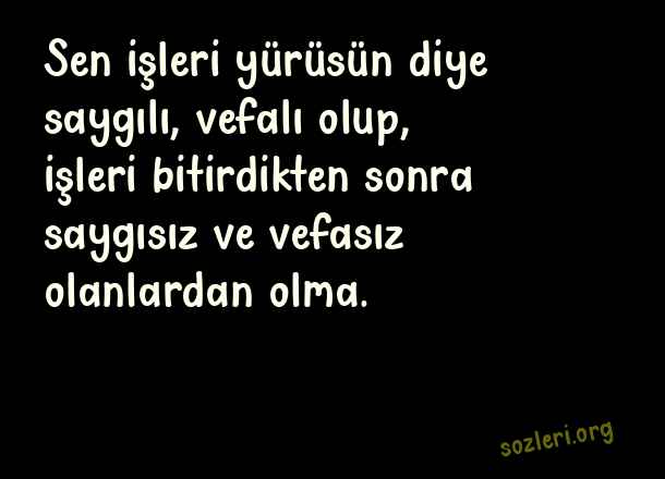 Sen işleri yürüsün diye saygılı, vefalı olup, işleri bitirdikten sonra saygısız ve vefasız olanlardan olma. ( Saygısızlık )