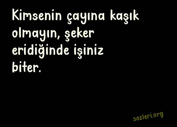 Kimsenin çayına kaşık olmayın, şeker eridiğinde işiniz biter. ( Şeker Sözler )