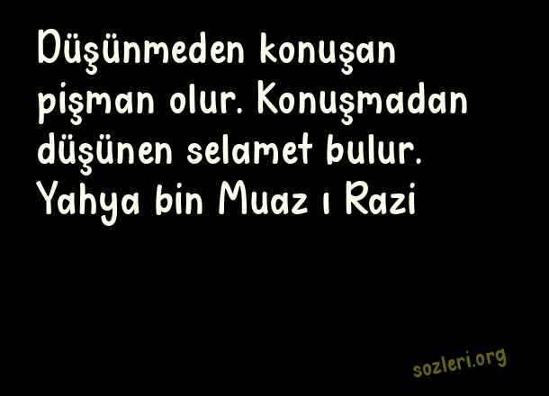 Düşünmeden konuşan pişman olur. Konuşmadan düşünen selamet bulur. Yahya bin Muaz ı Razi ( Selam )