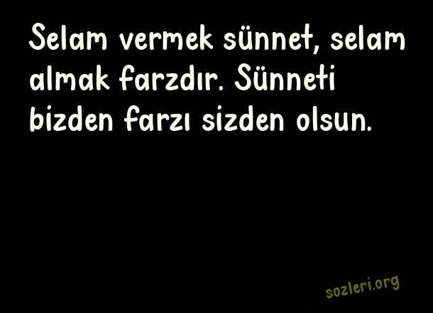 Selam vermek sünnet, selam almak farzdır. Sünneti bizden farzı sizden olsun. ( Selam )