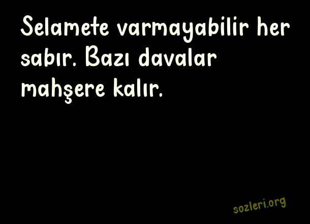 Selamete varmayabilir her sabır. Bazı davalar mahşere kalır. ( Selam )