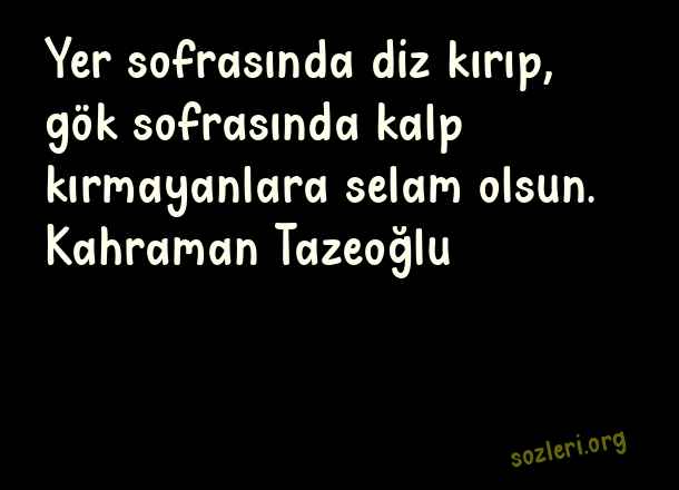 Yer sofrasında diz - Selam Sözleri .. Yer sofrasında diz kırıp, gök sofrasında kalp kırmayanlara selam olsun. Kahraman Tazeoğlu ( Selam )