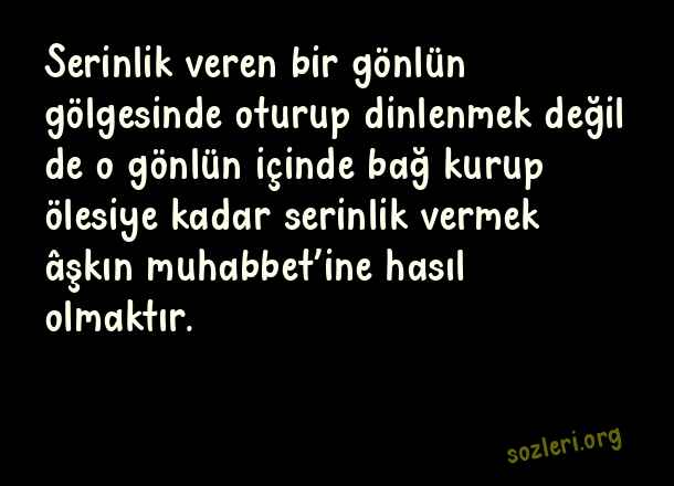 Serinlik veren bir gönlün gölgesinde oturup dinlenmek değil de o gönlün içinde bağ kurup ölesiye kadar serinlik vermek âşkın muhabbet’ine hasıl olmaktır. ( Serinlik )