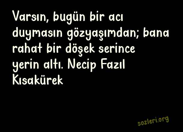 Varsın, bugün bir acı duymasın gözyaşımdan; bana rahat bir döşek serince yerin altı. Necip Fazıl Kısakürek ( Serinlik )