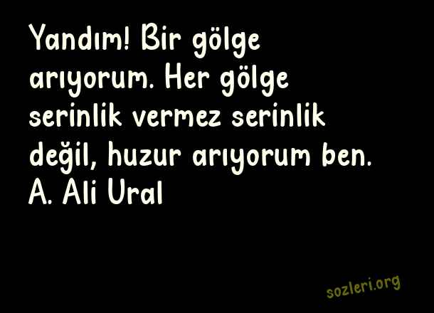 Yandım! Bir gölge arıyorum. Her gölge serinlik vermez serinlik değil, huzur arıyorum ben. A. Ali Ural ( Serinlik )
