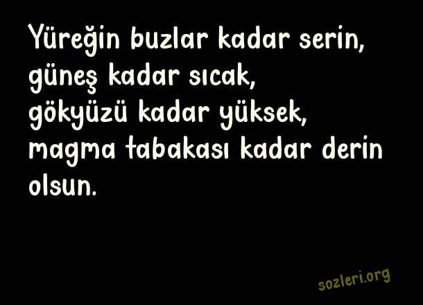 Yüreğin buzlar kadar serin, güneş kadar sıcak, gökyüzü kadar yüksek, magma tabakası kadar derin olsun. ( Serinlik )