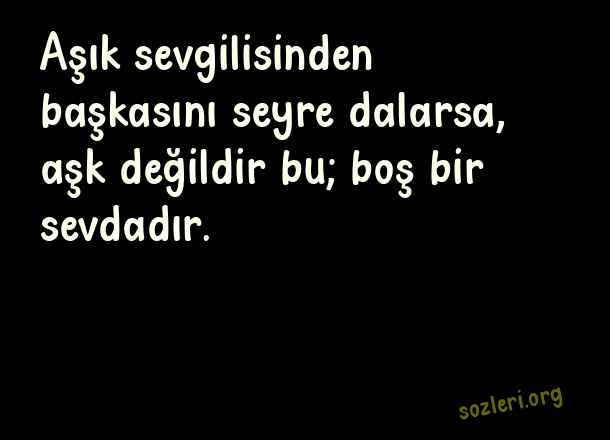 Aşık sevgilisinden başkasını seyre dalarsa, aşk değildir bu; boş bir sevdadır. ( Sevda )