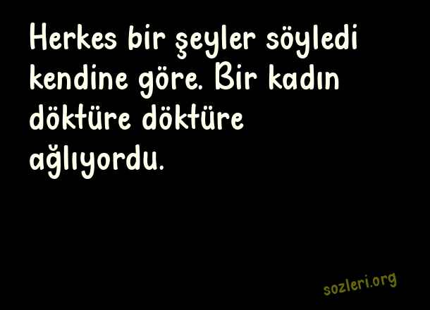 Herkes bir şeyler söyledi kendine göre. Bir kadın döktüre döktüre ağlıyordu. ( Sevda )