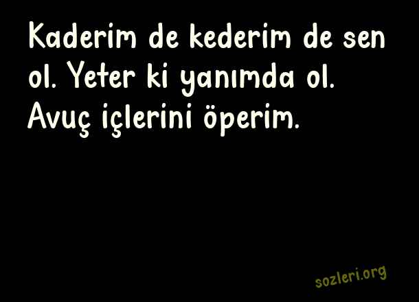 Kaderim de kederim de sen ol. Yeter ki yanımda ol. Avuç içlerini öperim. ( Sevda )