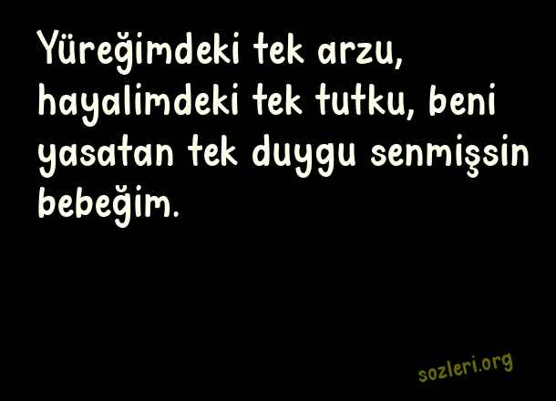 Yüreğimdeki tek arzu, hayalimdeki tek tutku, beni yasatan tek duygu senmişsin bebeğim. ( Sevda )