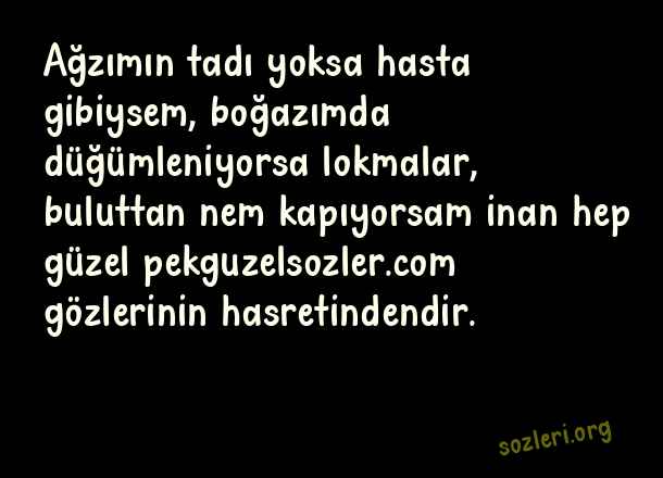 Ağzımın tadı yoksa hasta gibiysem, boğazımda düğümleniyorsa lokmalar, buluttan nem kapıyorsam inan hep güzel gözlerinin hasretindendir. ( Sevenler İçin Mesajlar )