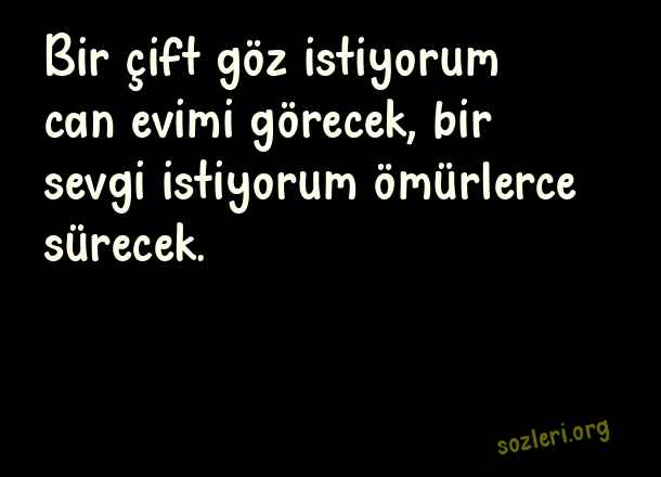 Bir çift göz istiyorum can evimi görecek, bir sevgi istiyorum ömürlerce sürecek. ( Sevenler İçin Mesajlar )