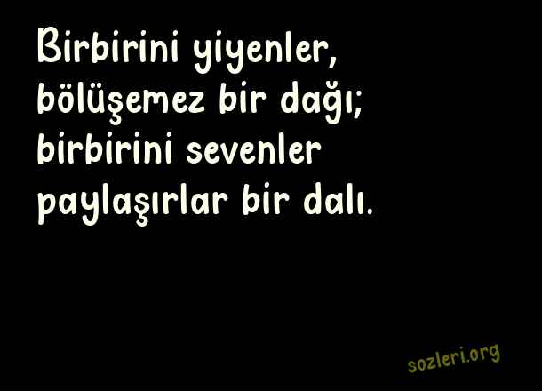 Birbirini yiyenler, bölüşemez bir dağı; birbirini sevenler paylaşırlar bir dalı. ( Sevenler İçin Mesajlar )